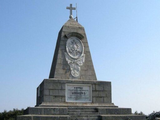 На Шипке находятся несколько обелисков, в том числе и памятник русскому царю- освободителю Александру II, который установлен немного ниже и встречает туристов первым.