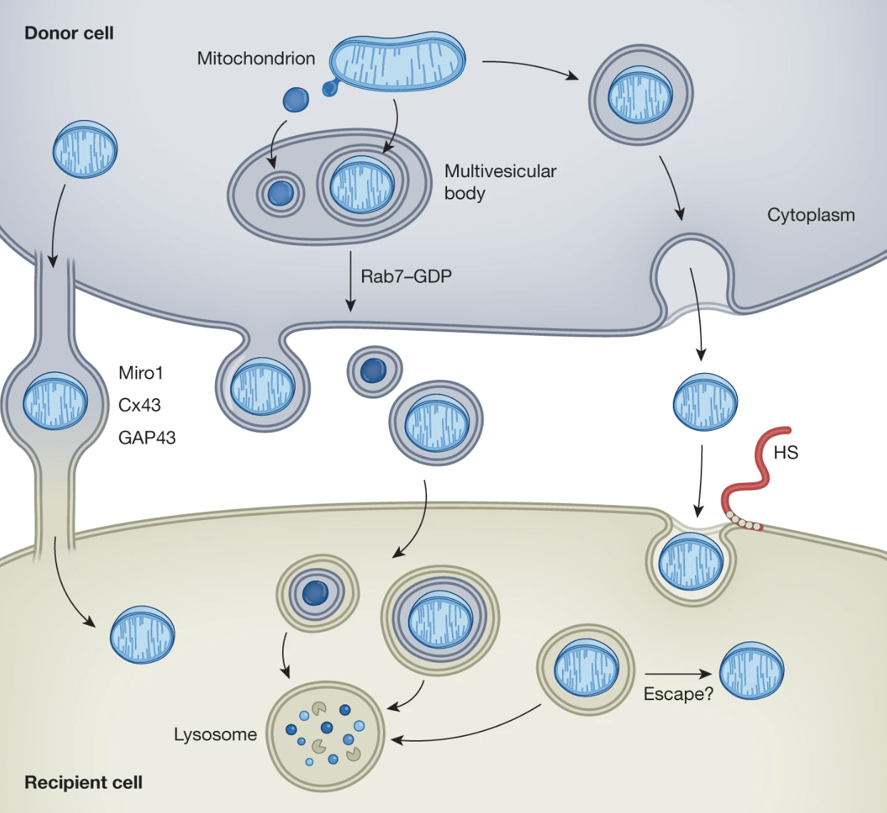 Потенциальные пути перемещения трансплантированных митохондрий