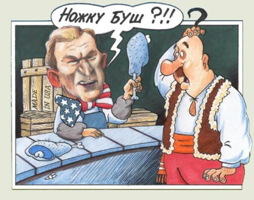 Сильный удар нанесен по свино- и птицеводческим комплексам, некогда кормившим страну. Г-н Ковалев продемонстрировал это на простеньком расчете. Чтобы свинья прибавила килограмм, нужно 8 кормовых единиц. Обойдется это в 3,5 тыс. руб., а закупочная цена 3,6 тыс. Но ведь надо еще платить за электроэнергию, ГСМ, сделать другие многочисленны расходы. Итого: себестоимость свинины подпирает под 5 тыс. рублей. Что остается крестьянину? На каждом килограмме — 1,4тыс. убытков. Еще трагичнее положение в птицеводческой отрасли. По мнению г-на Ковалева, она пала под натиском «ножек Буша». В Россию их начали поставлять по демпинговым ценам: 50 центов за килограмм. Правительства стран-импортеров дотировали своим производителям разницу, а наши посредники продавали окорочка за 1 доллар. И 64 бройлерные фабрики России вскоре влетели в трубу. «По мере того как исчезали отечественные конкуренты, — говорит г-н Ковалев, — цена окорочков, к примеру, на востоке, поднялась до. 3 — 4 долларов. Скоро импортеры додавят центральную часть страны, цены подскочат и здесь».