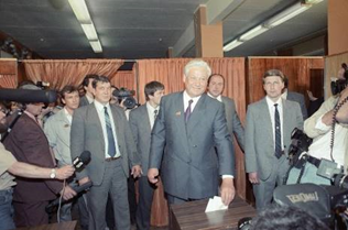 Ельцин получил президентский пост всенародным голосованием. Однако в отличие от союзного президента, пробывшего в изоляции три дня, похоже, находится в состоянии некоего перманентного Фороса. Эволюция Горбачева — от партфункционера к вполне сознательному демократу, Ельцина — от бунтаря и сопредседателя Межрегиональной депутатской группы к защитнику интересов номенклатуры.