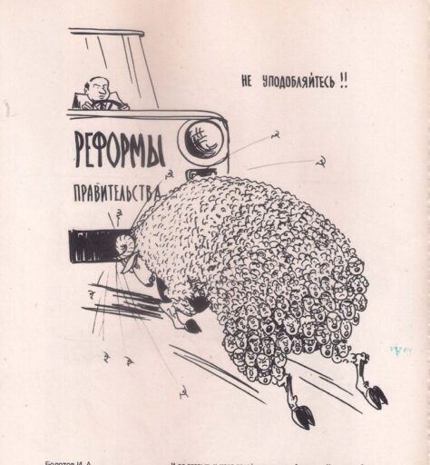 -Болотов И.А. Фатежский территориальный избирательный округ, Курская область. «И во- вторых у меня такой риторический вопрос. Что у нас съезд действительно сборище баранов? Я не случайно это говорю. Вы посмотрите на карикатуру, которая находится в вестибюле. Гайдар несется на машине, а 1068 баранов ему препятствуют. Руслан Имранович, я прошу поручить Генеральному прокурору Степанкову разобраться с этим. Это оскорбление».